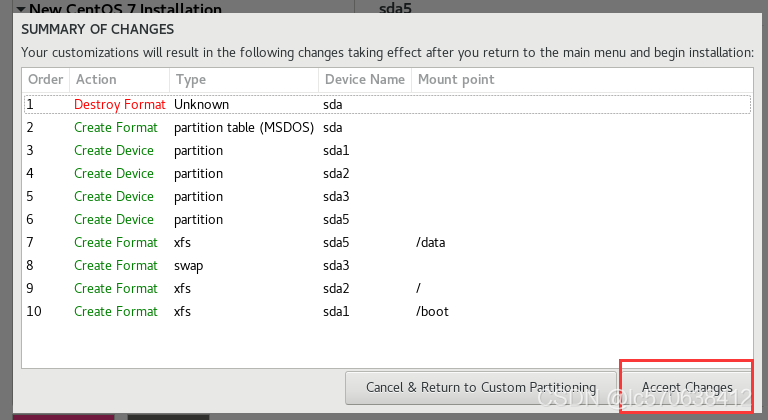 - ?自定义分区,点击INSTALLATION DESTIONACTION