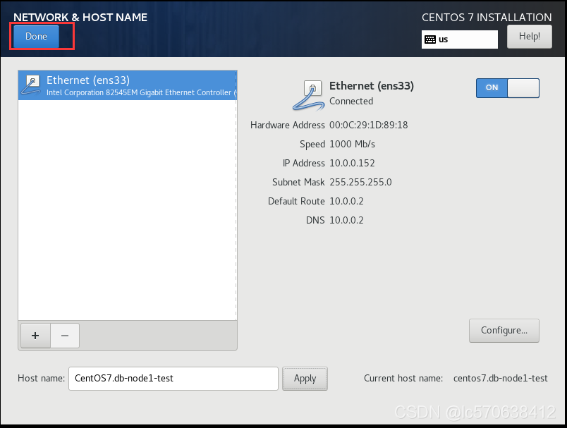 - ?配置网络和主机名,点击NETWORK & HOST NAME