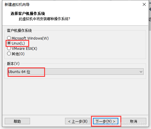 唯一的区别就是客户端操作系统选择 Linux, 版本选择 Ubuntu 64位 ,如下图所示:? ?? ? ? ? ? ? ? ? ? ? ? ??