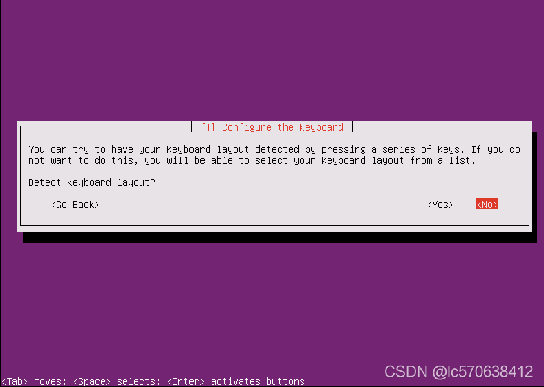 - ?选择No,不检测键盘布局? ? ? ? ?