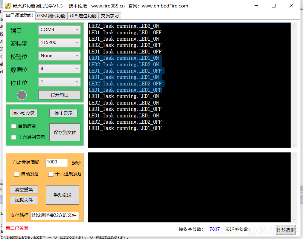下面主要分析程序的这个翻转过程,包括通过串口打印运行测试的现象理解: