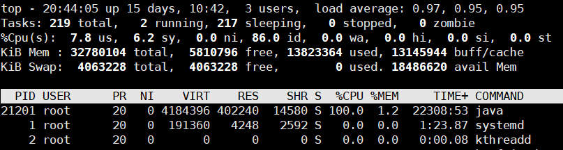 KiB Mem : 32780104 total, 5848456 free, 13789140 used, 13142508 buff/cashe