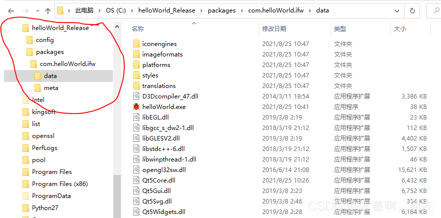建立如下的目录结构,将要打包的所有文件复制到 data 文件夹中。