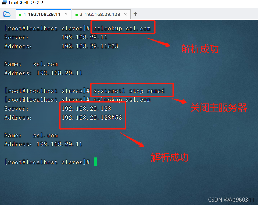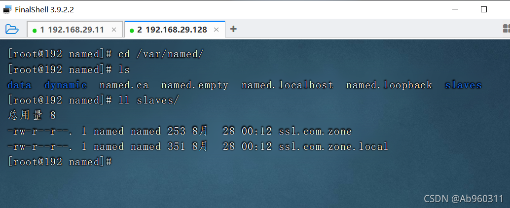 6.主和从服务器的DNS服务都重启,然后查看从服务器内的slaves目录内是否下载成功?