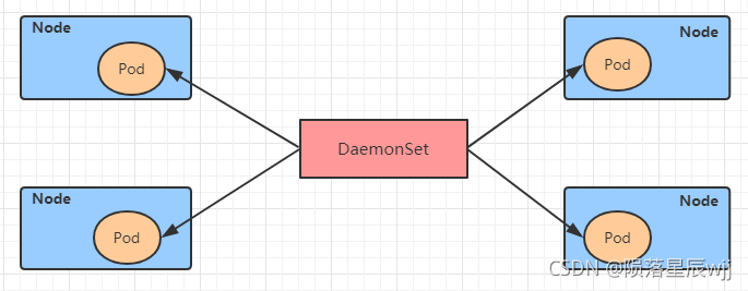 DaemonSet:在集群中的指定Node上运行且仅运行一个副本,一般用于守护进程类的任务   -