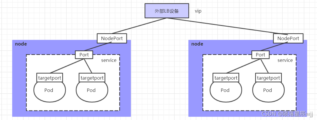 NodePort:将Service通过指定的Node上的端口暴露给外部,通过此方法,就可以在集群外部访问服务   -