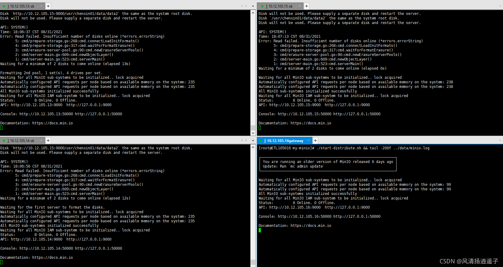 http://minio-{3...4}/usr/chenxin01/data/data{1...2} > /usr/chenxin/data/minio.log 2>&1 &