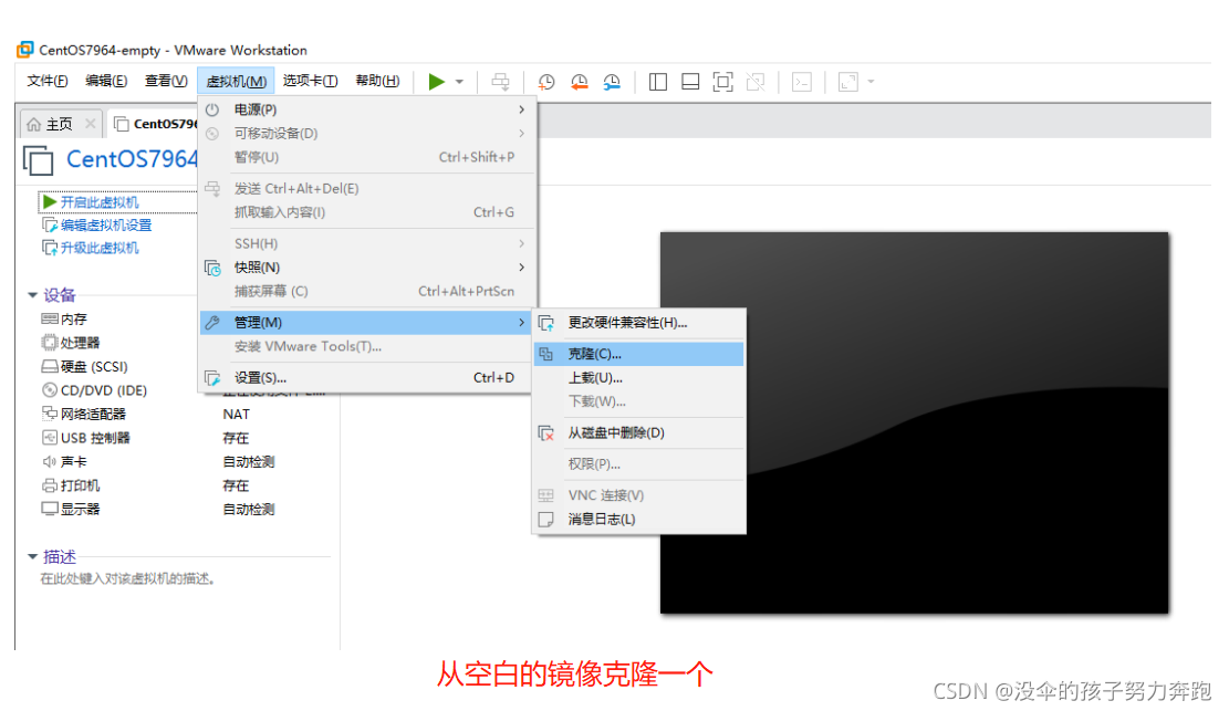 ?3.第三步:克隆CentOS(选择链接克隆-更省空间),命名为CentOS7964-docker