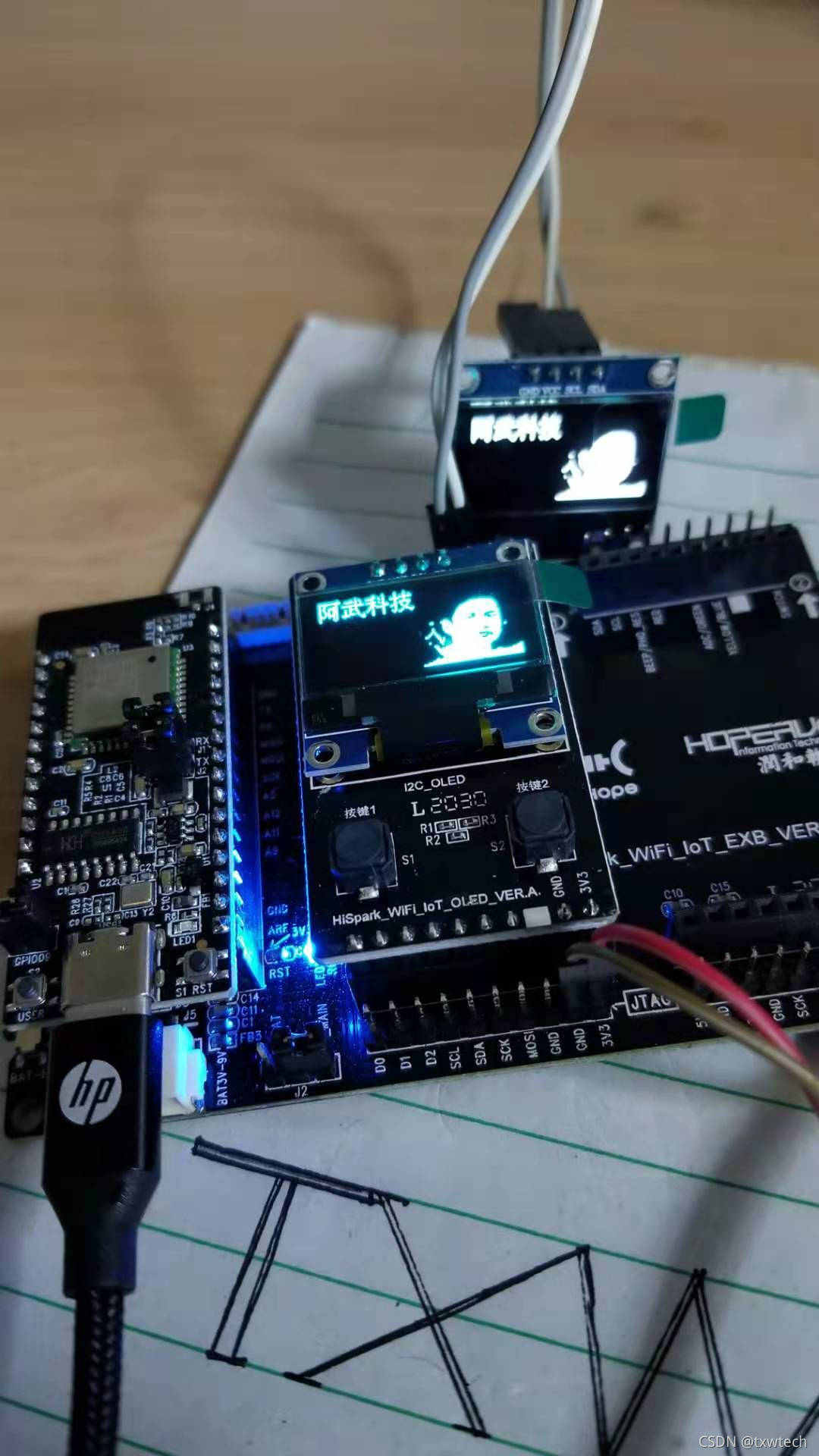 鸿蒙开发板Hi3861_驱动0.95_oled显示屏ssd1306_code-2.0-CANARY_双显示屏效果