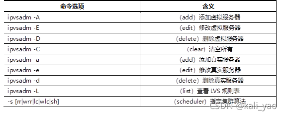 -s后面指定调度算法,如rr(轮询)、wrr(加权轮询)、lc(最少连接)、wlc(加权最少连接)等等