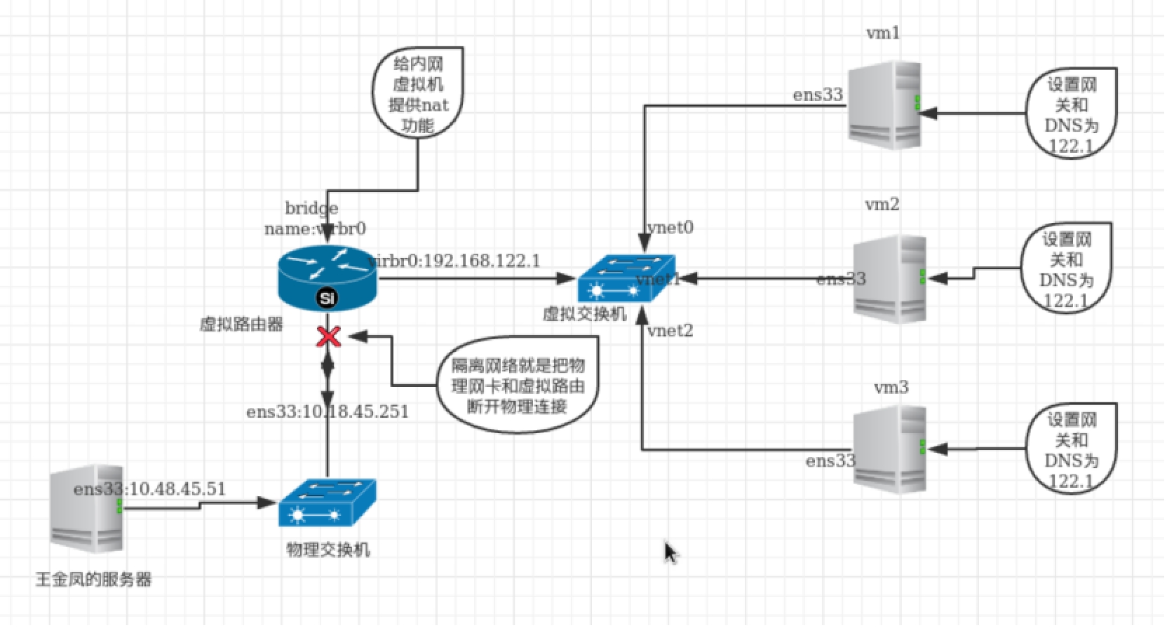 就是对外的虚拟接口与物理网卡之间连接的网线断开