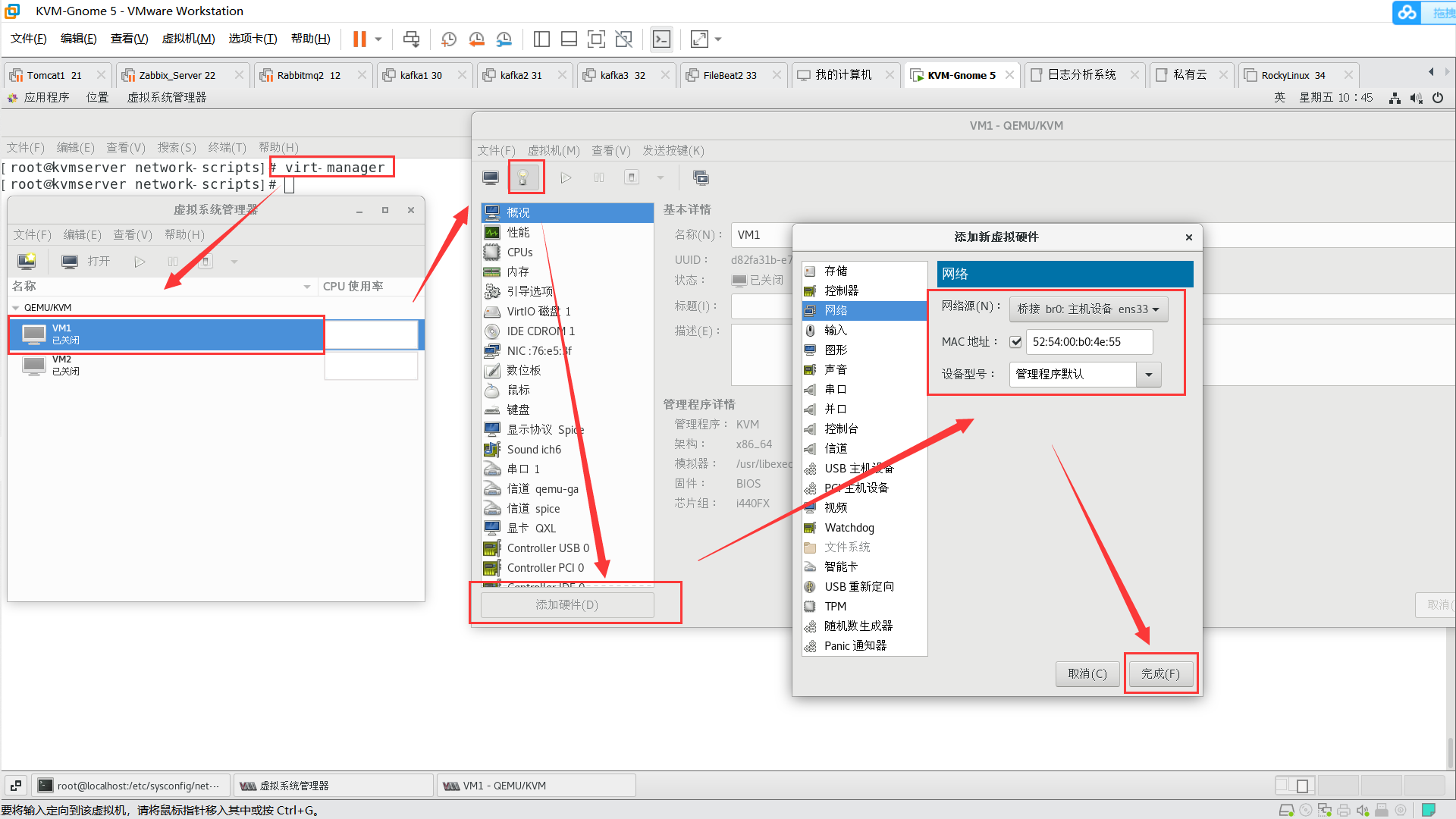 4. 按图形操作即可,新添加一块网卡为新建的桥接设备........