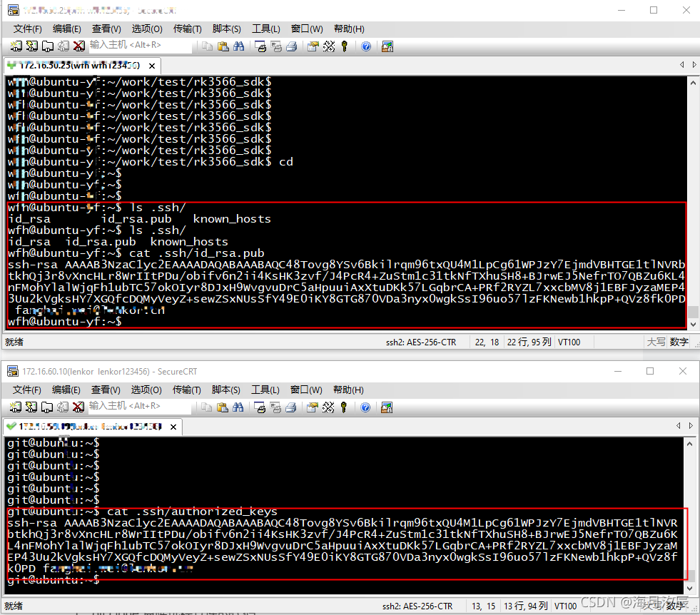 ? ? ?3、在客户端ssh-keygen -t rsa -C "email@example.com" 生成私钥与公钥,并复制追加到Ubuntu服务器的/home/git/.ssh/authorized_keys文件中。