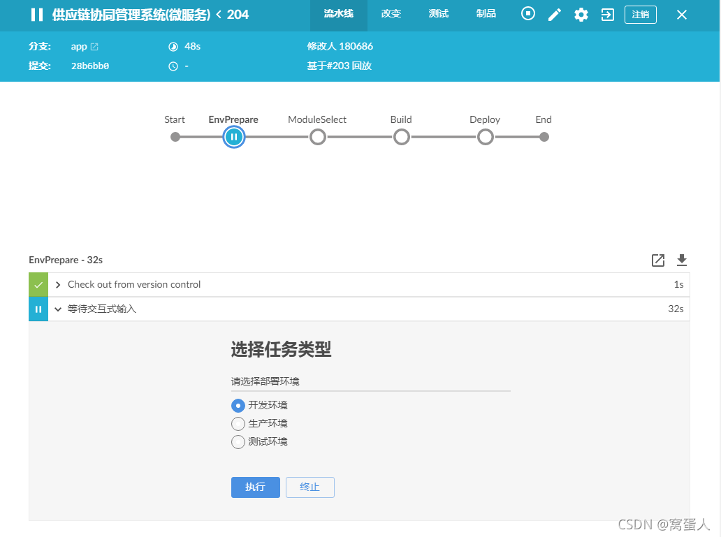 projectEnvironmentStr = input message: '请选择部署环境', ok: '执行',