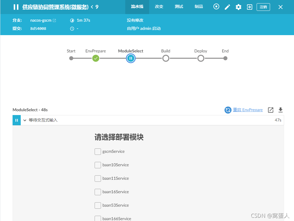 注:jenkins的Extended Choice Parameter插件无法使用与blueocean,要使用原来的Parameter的Boolean?Parameter来实现多选框选择