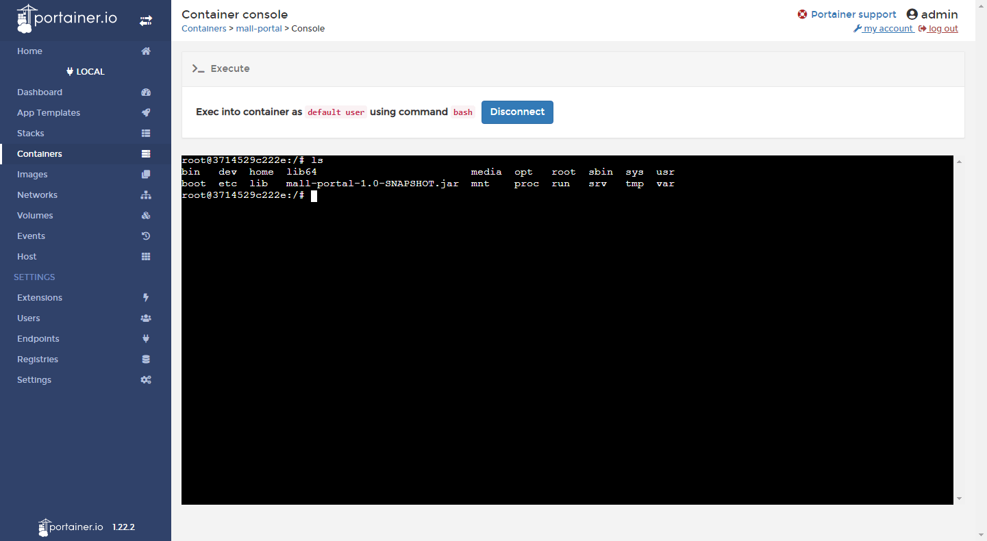 进入mall-portal应用的容器内部来操作容器内部系统: