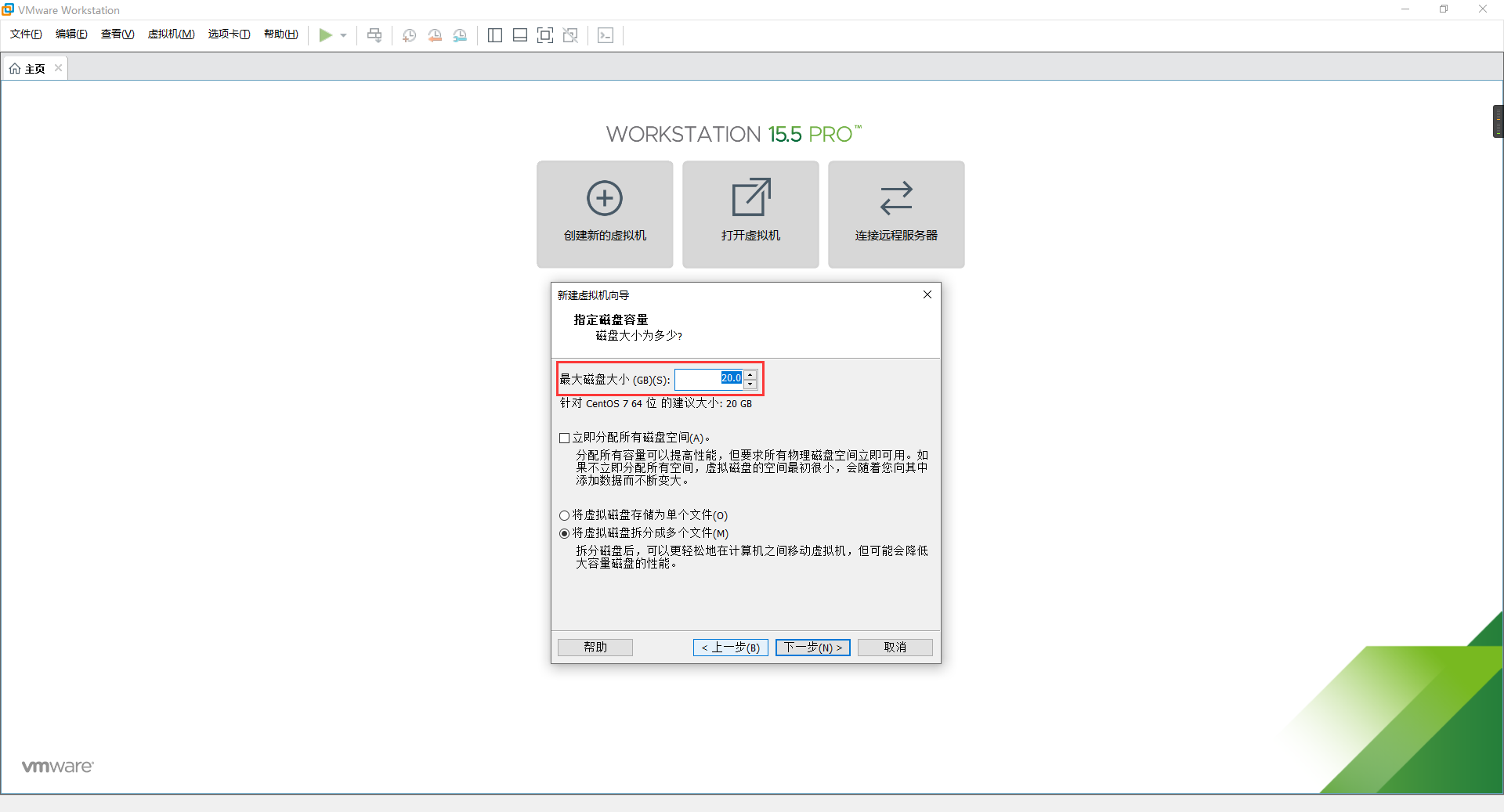 选择VMware Workstation 15或者16版本下载,并点击进行安装,选择安装目录为非系统盘,一般默认情况下点击下一步即可完成安装。 安装成功,并打开VMWare的界面如下: (2)使用VMWare构建虚拟机器现在通过虚拟机软件构建一台硬件设备,即模拟买一台电脑的过程: (1)点击创建新的虚拟机,并选择自定义(高级),点击下一步