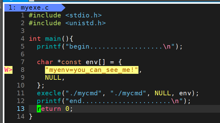 - 这里就要说明一下execle中最后一个e的作用,它代表的意思是将环境变量传入mycmd,而据我测试,这个环境变量的替换会覆盖掉bash中的环境变量,也就是说如果你传入的env中没有定义"PWD"这个环境变量,虽然这个环境变量是全局的,mycmd中也不会接受到,因为程序替换后,它的环境变量只来自env这个数组。