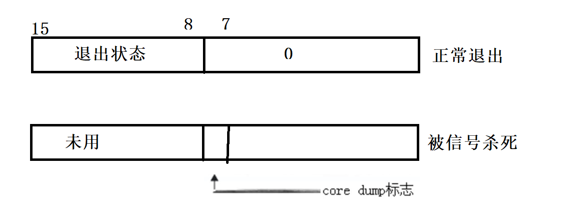 - 如果一个进程因为异常被信号杀死,那么它的返回值将毫无意义。那么低7位会显示杀死它的信号。