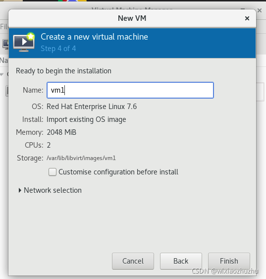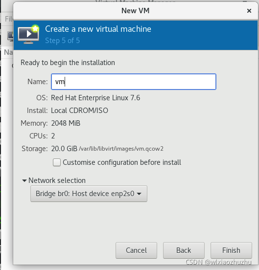 先手动建立一台虚拟机,真机环境是rhel8.2版本,需要建立rhel7.6环境的虚拟机