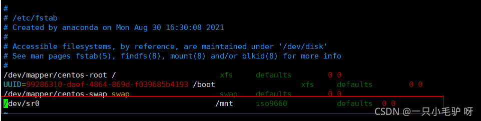 ? ? ? ?命令:vim? /etc/fstab