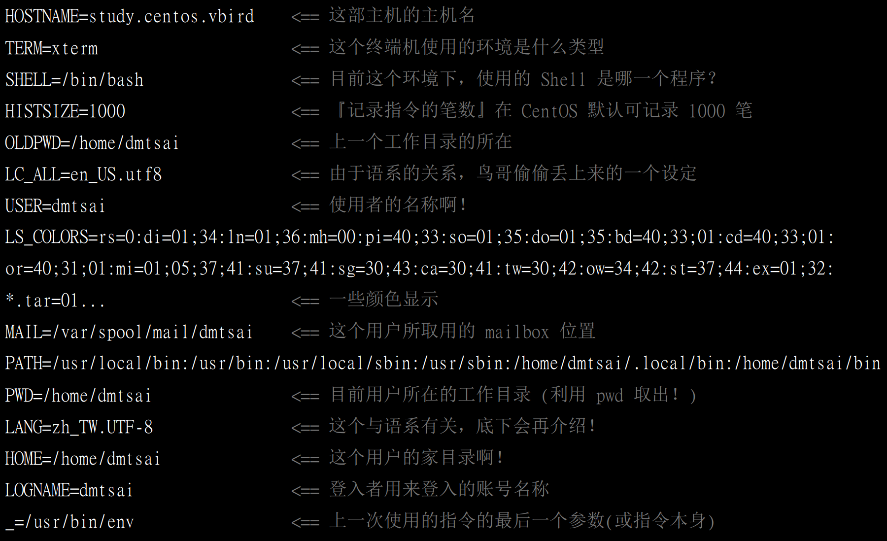 重点关注一下环境变量 HOME SHELL HISTSIZE MAIL PATH LANG PANDOM
