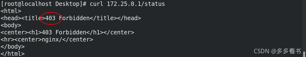 在客户端用浏览器测试:用浏览器访问不会产生日志,使用curl 172.25.0.1/status 访问会产生日志