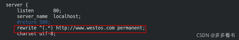 #rewrite ^/(.*)$ https://www.westos.com/$1 permanent;