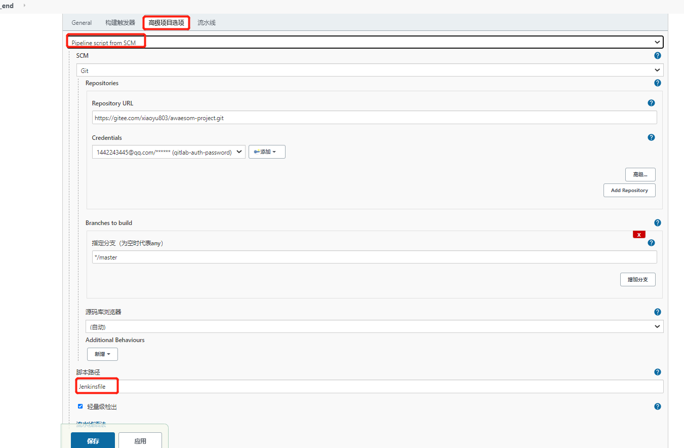 创建凭证(用户密码类型) Jenkins->凭证->系统->全局凭证->添加凭证  选择"Username with password",输入Gitlab的用户名和密码,点击"确定"。之后在项目中就可以用该凭证了 -