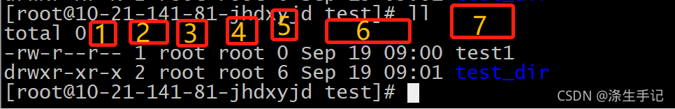 -rw-r--r-- 1 root root 0 Sep 19 09:41 test_dir2/test