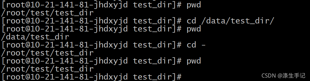 [root@10-21-141-81-jhdxyjd test_dir]# cd - ##回到上一个切过来的目录,终端会打印当前所在的目录