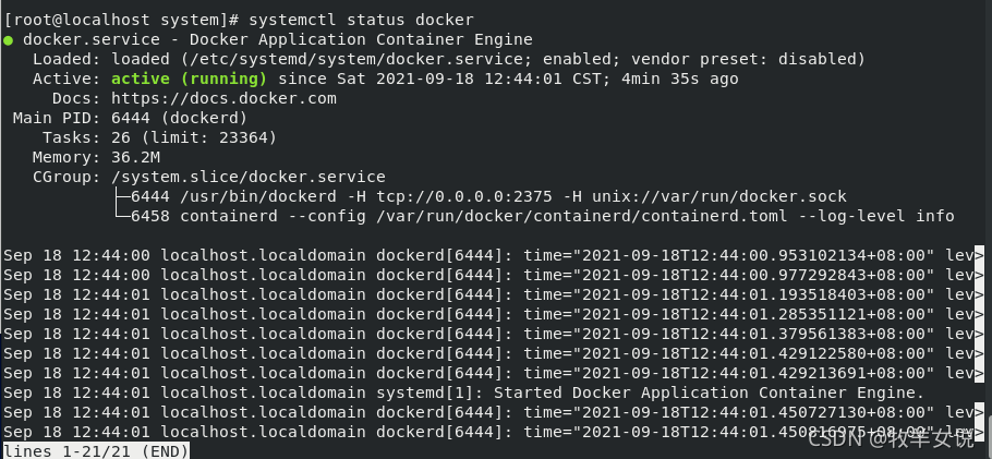 到此,已经可以执行docker命令了,如下命令可查看docker的版本信息。