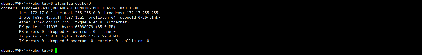 Bridge网络通过网络接口docker0 与主机桥接,启动docke时就会自动创建,新创建的容器默认都会自动连接到这个网络,可以在主机上通过ifconfig docker0 查看到该网络接口的信息;