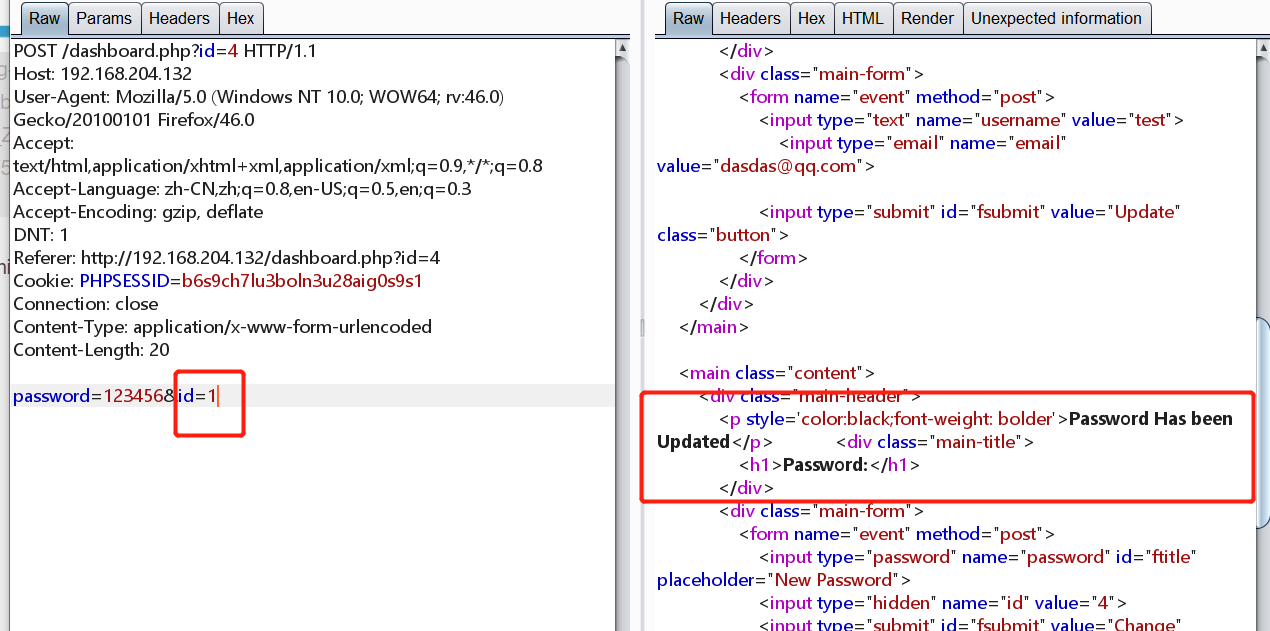 靶机提示不用采取爆破,所以先注册一个账号 经过尝试可以通过修改id,对admin账户进行密码修改  使用burp修改id值,达到修改admin账户密码,登录后发现有上传点