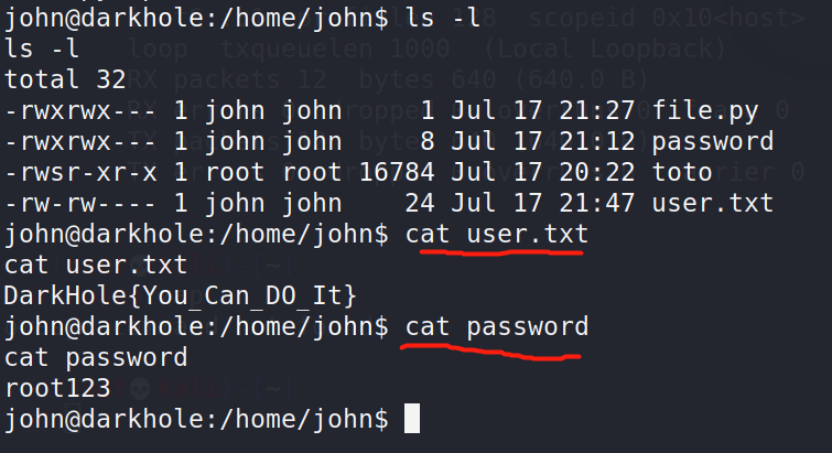 通过ls -l ,查看user拿到第一个flag,查看password拿到密码