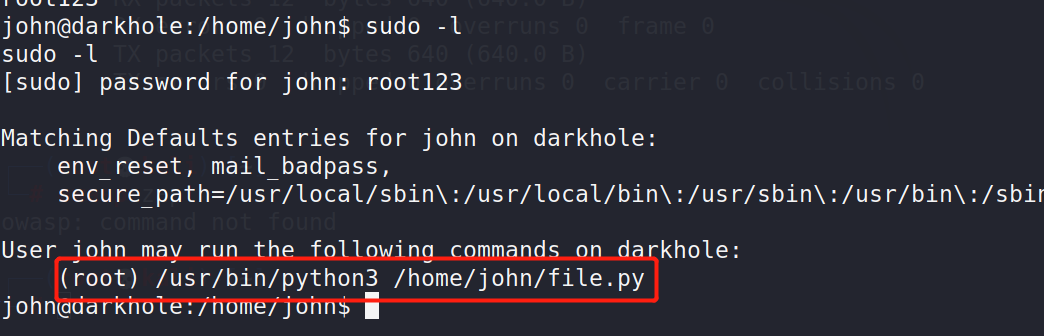 通过sudo -l,看到提升root的提示  通过在file.py中添加命令获得root 权限