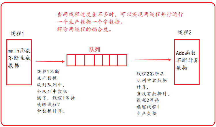 ? ? ? ?上面是单线程的情况,即使是多线程,不使用生产者消费者模型,生产者直接给消费者送数据,整个进程的效率会是最慢的线程的效率。并且只能生产一个数据,消费一个数据。两者还是串行的,耦合度高。