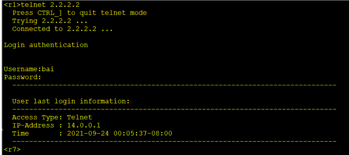 [r7-aaa]local-user bai service-type telnet