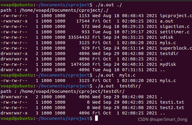 下面展示linux 命令? ls 原理的程序:(不支持通配符)