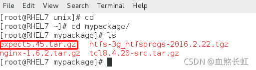 #tar zxf expect5.45.tar.gz -C /usr/src 解压到指定位置