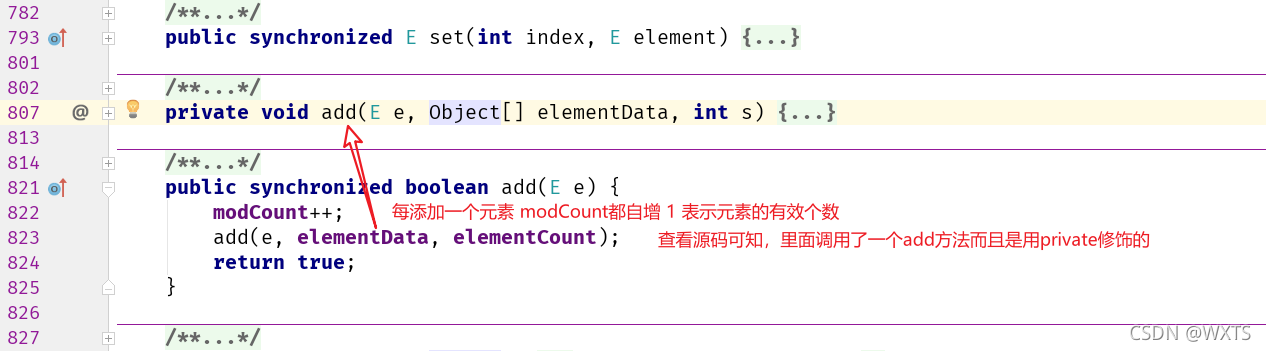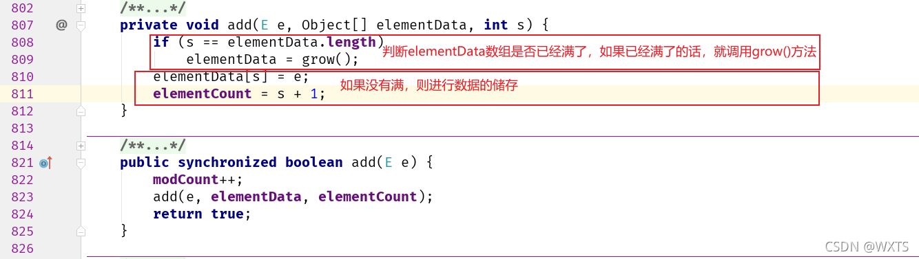 ?add调用了private void add()查看且传入了被添加的元素e,还有elementData数组,int 型的elementCount