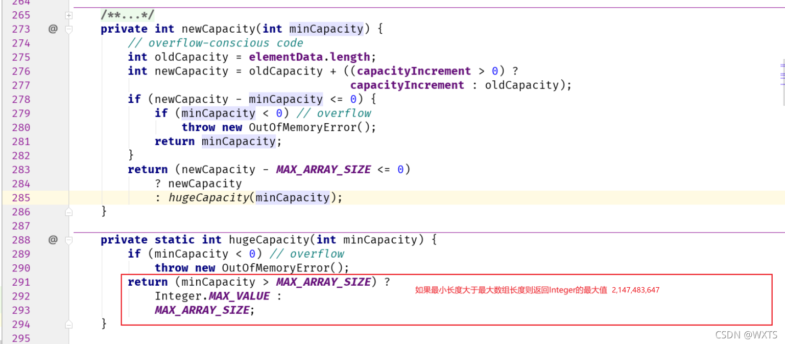 跟进源码查看hugeCapacity()方法