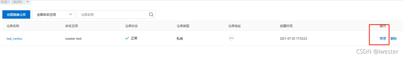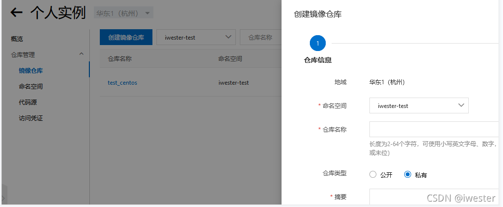 1: 在阿里云后台创建好命名空间,与镜像仓库 - 见下图