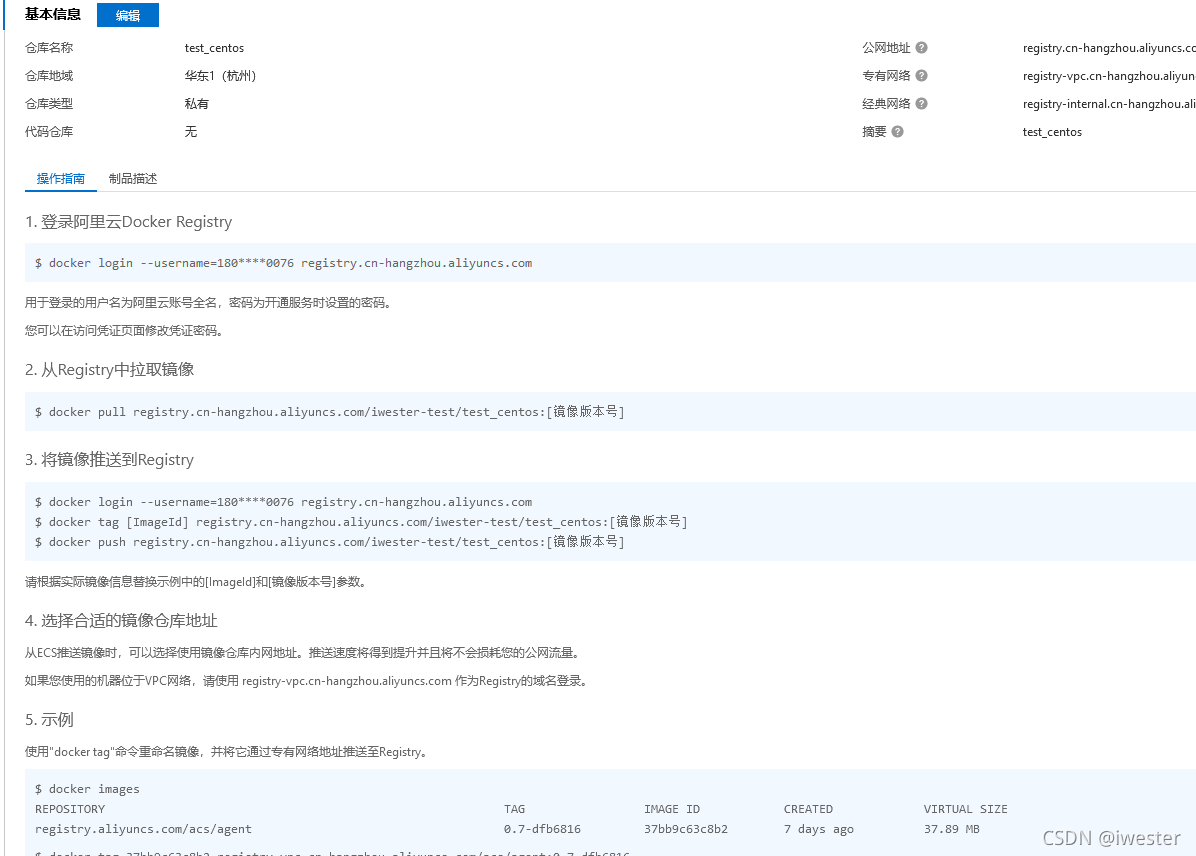 5:docker push registry.cn-hangzhou.aliyuncs.com/iwester-test/my_mysql:[镜像版本号]