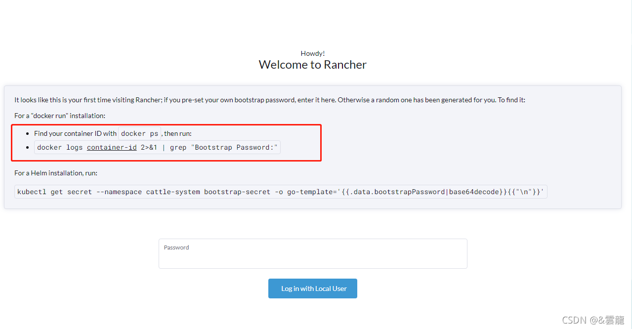 docker logs container-id 2>&1 | grep "Bootstrap Password:" #替换上容器ID后执行