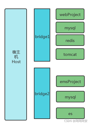 - 解决方法:每个项目单独使用一个自己的网桥,将不同项目系统之间的通信隔离开来,互不干扰资源调度。