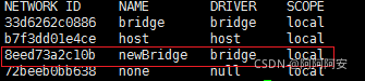 # docker create -d bridge [网桥名称] #随机分配下一个网段