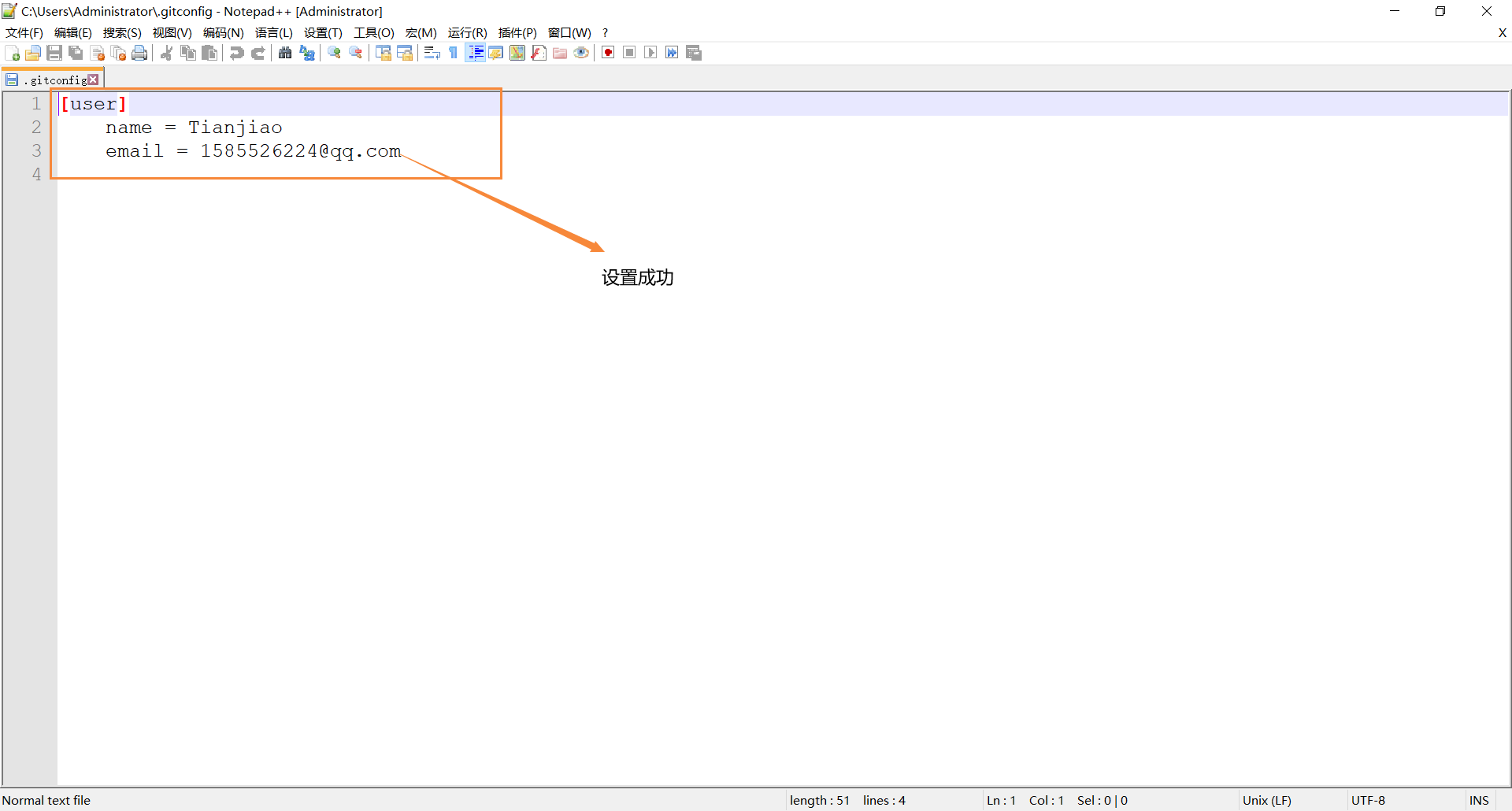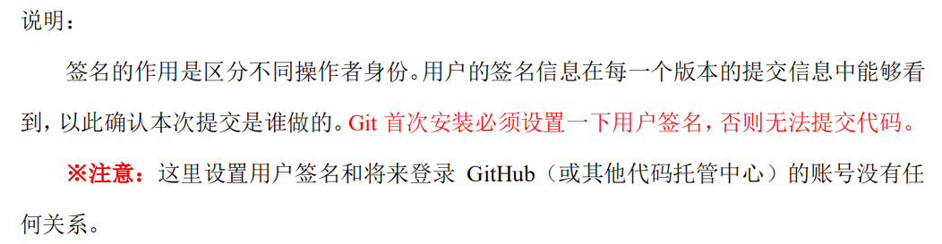 当你把git安装好后,你只需要设置一次用户签名就够了。这个是必须设置的,如果你不设置,那么将来你提交代码的时候是会报错的。