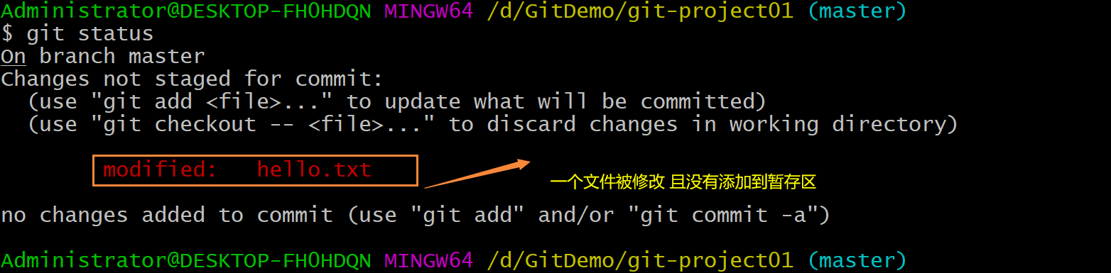 注意,删去暂存区里面的文件,不会删去工作目录的文件 git rm --cached hello.txt