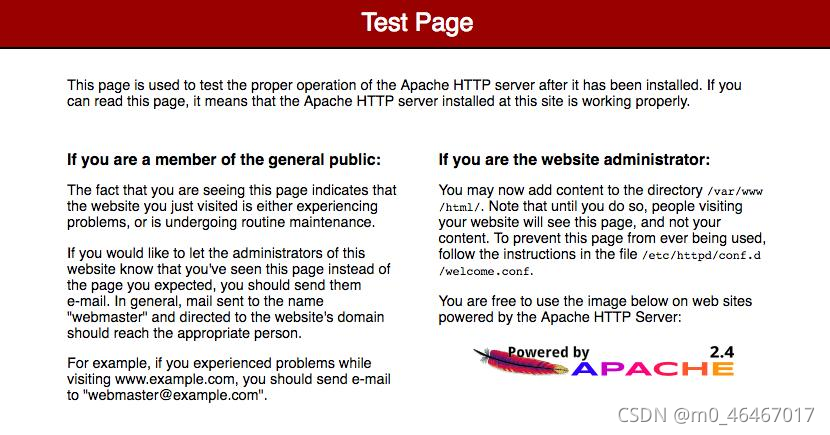 如果服务器启动成功 通过浏览器输入本地ip地址查看会显示当前操作系统的一个测试页面 如图所示(以红帽为例)